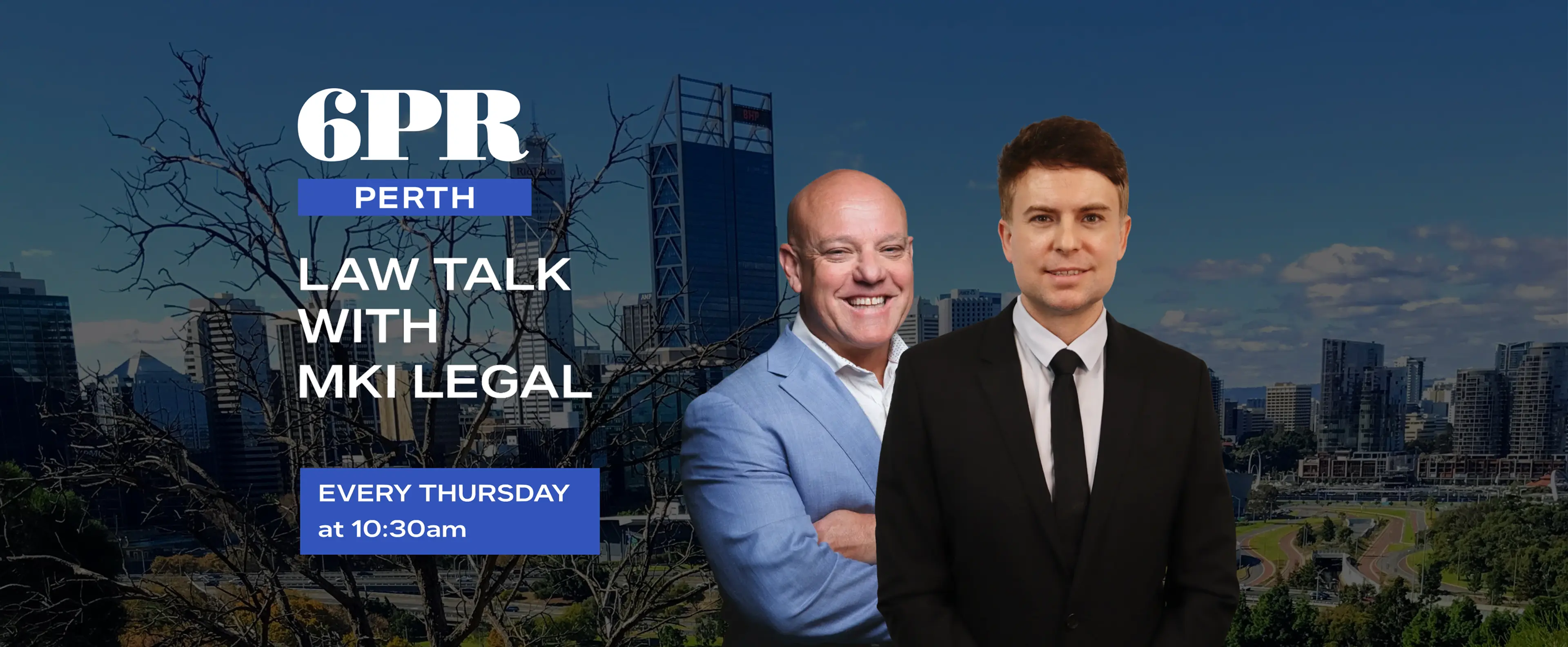 Join MKI Legal on Law Talk every Thursday at 10:30am to 11am to answer your legal questions with Simon Beaumont on 6PR Perth Radio.